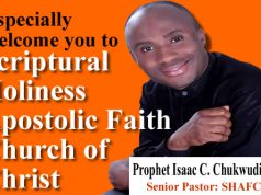Home About SHAFACC Dedication Messages from the General Overseer – Prophet Isaac C. Chukwudinma About SHAFACCDedicationMessages Messages from the General Overseer – Prophet Isaac C. Chukwudinma By Scriptural Holiness Apostolic Faith Church of Christ - September 8, 2021 80 0 SHARE Facebook Twitter Stay tuned for messages from the prophet shortly. God bless you. RELATED ARTICLESMORE FROM AUTHOR Messages Give God Glory Messages GOD WILL DO A NEW THING Messages SPECIAL WELCOME BY Prophet Isaac Chigbo Chukwudinma LEAVE A REPLY Cancel reply Save my name, email, and website in this browser for the next time I comment. - Advertisement -APPLE SPECIAL WELCOME BY Prophet Isaac Chigbo Chukwudinma Scriptural Holiness Apostolic Faith Church of Christ - September 8, 2021 0 Messages It's my pleasure to welcome you to worship with us this Sunday @Scriptural Holiness Apostle Faith Church of Christ . Follow our weekly programmes and... RECENT POSTS Upcoming All Night Family Deliverance Program Today Scriptural Holiness Apostolic Faith Church of Christ - July 5, 2024 Prayer for Nigeria Scriptural Holiness Apostolic Faith Church of Christ - June 23, 2022 Season’s Greetings Scriptural Holiness Apostolic Faith Church of Christ - December 30, 2021 How Long Oh Lord! Scriptural Holiness Apostolic Faith Church of Christ - December 12, 2021