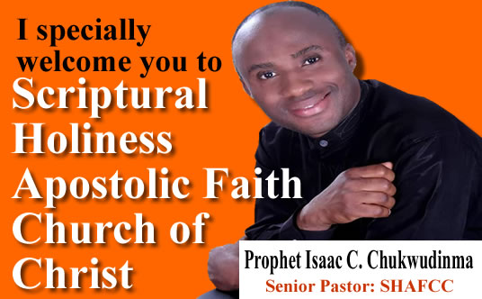 You are cordially invited to join our various services: Sunday Service: 8am_11am Wednesday: Prayer & Healing Service 6pm_7pm Every 7th of the month - Prophetic, prayers and deliverance service (777) 7am_2pm Scriptural Holiness Apostolic School of Ministries (SHASM) 1st Session- 1st weekend September to 3rd weekend November. 2nd Session: 3rd weekend January to 4th weekend ...